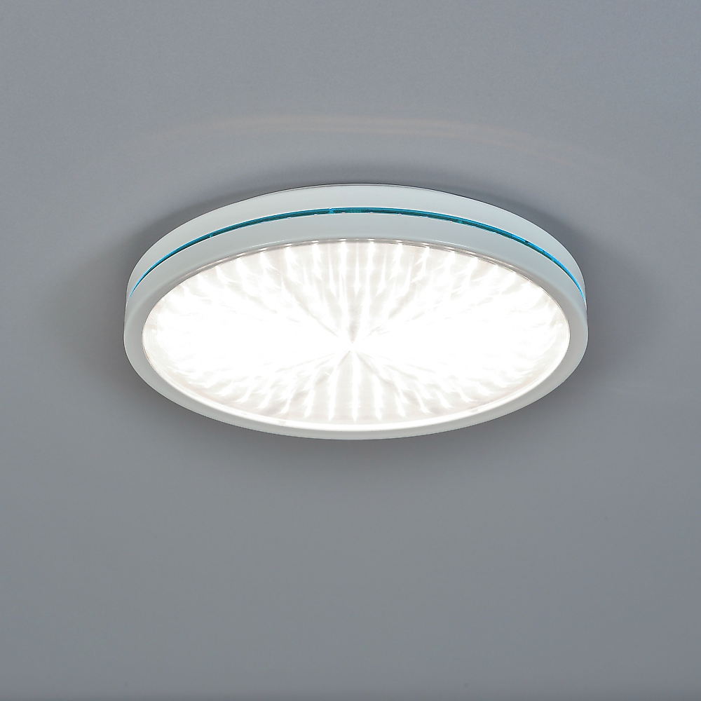 Die x.jo prisma Aufbauleuchte ist eine moderne, flache LED-Leuchte zur Deckenmontage, erhältlich in zwei Baugrößen – „klein“ und „groß“. Sie vereint zeitgemäßes Design mit lichttechnisch wirksamer Entblendung über eine Microprismenscheibe. Durch ihre kompakte Bauform, gleichmäßige Ausleuchtung und gestalterische Details eignet sich die Leuchte ideal für Flure, Aufenthaltsräume, Eingangsbereiche oder Bildungsbauten. Das Gehäuse besteht aus zwei Teilen aus matt pulverbeschichtetem Stahlblech. Zwischen den Halbschalen ist ein transparenter oder farbiger Acrylglas-Dekorring eingelassen, der für eine dezente Lichtwirkung und einen leichten Lichthof um die Leuchte sorgt. Dadurch entsteht ein gestalterisch ansprechender Effekt an der Decke. Die Leuchte ist in verschiedenen Dekorfarben lieferbar, darunter u. a. Varianten mit transparentem oder farbigem Acrylring (z. B. hellblau). Für die blendfreie Lichtabgabe sorgt eine klar geprägte Microprismenscheibe (RDP), mit einer normgerechte Entblendung gemäß UGR <19. Die Lichtverteilung erfolgt vollständig direkt (100 % Direktlicht) breitstrahlend. Die Betriebselektronik ist in der Leuchte integriert und für flimmerfreien Betrieb ausgelegt. Standardmäßig wird die x.jo prisma als schaltbare Leuchte geliefert. Verschiedene Systemleistungen und Lichtfarben sind je nach Variante verfügbar. Die Serie x.jo prisma ist in unterschiedlichen Abmessungen, Farben und Ausführungen erhältlich und ermöglicht eine flexible Integration in lichttechnische Konzepte – von funktionaler Allgemeinbeleuchtung bis hin zu gestalterischen Akzenten.