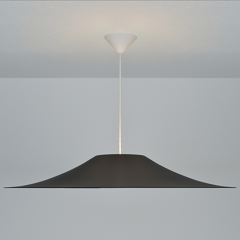 Der Leuchtenschirm besteht aus pulverbeschichtetem Aluminiumblech, erhältlich in RAL-Farben. Die Pendelleuchte wird über eine weiße Anschlussleitung abgehängt, mit standardmäßigem Pendelset (2000 mm Länge). Die Betriebselektronik ist im Leuchtengehäuse integriert, was eine einfache Montage ermöglicht. Optional sind Umbausätze für Bestandsleuchten, etwa in Bildungseinrichtungen, verfügbar.