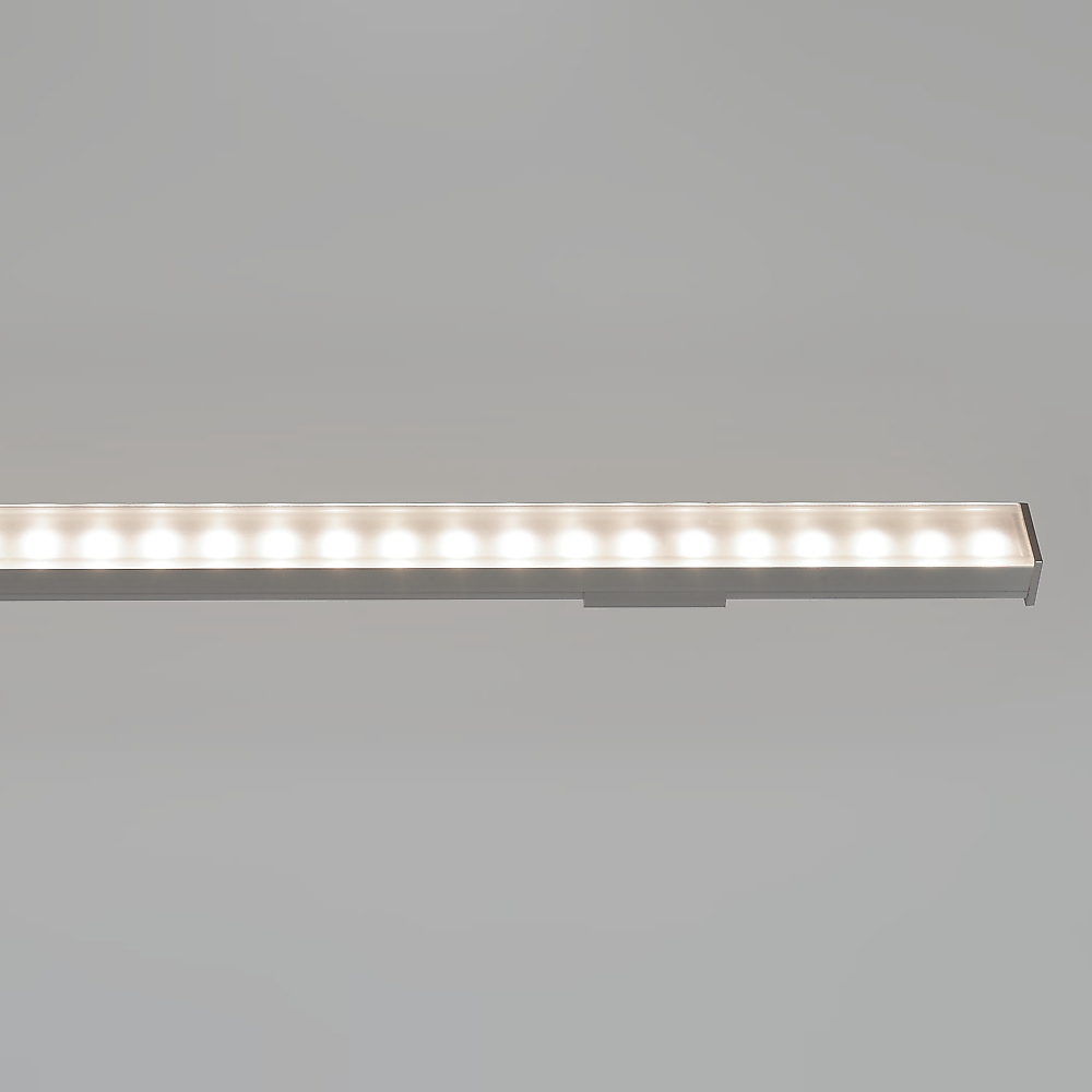 Das Gehäuse besteht aus einem hochwertigen, eloxierten Aluminiumprofil mit verschiedenen Cover-Optionen aus opalisiertem Acryl zur optimalen Lichtstreuung. Die Lichtlinie kann horizontal oder vertikal an Wand, Decke oder Boden montiert werden. Die Montage erfolgt werkzeuglos über aufsteckbare Montageplatten. Für den Außenbereich steht eine IP44-Variante mit beschichteten LED-Platinen zur Verfügung.