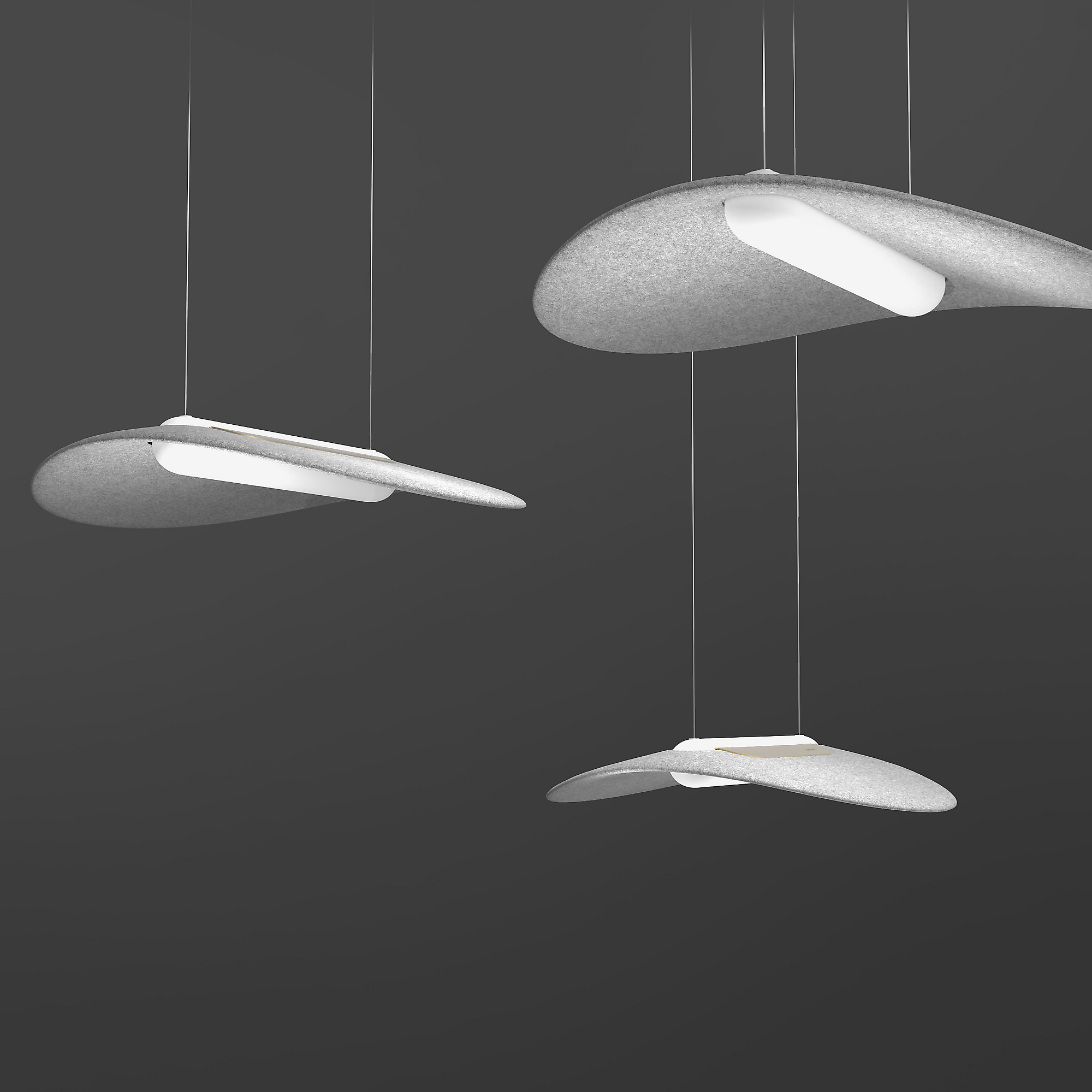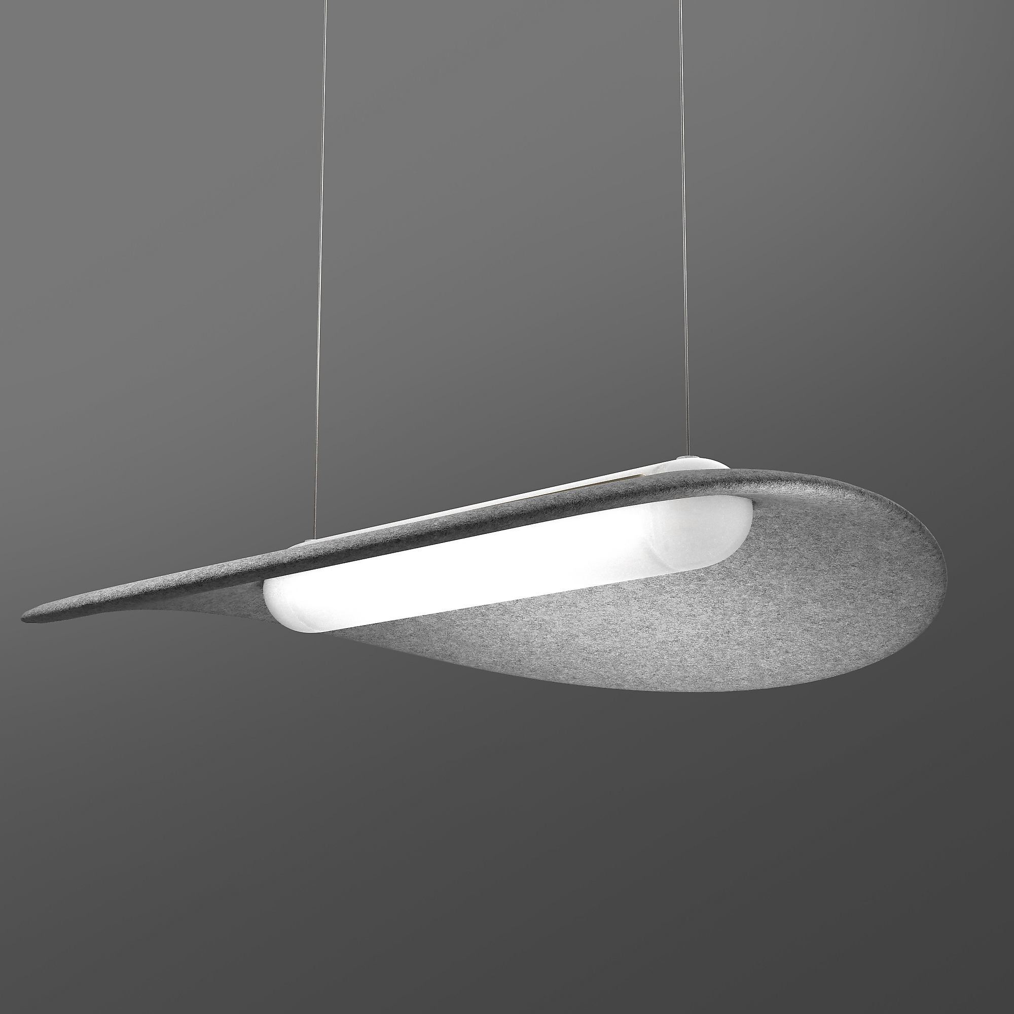 Leuchtender Blickfang. Licht & Akustik - ein Mehrwert. In verschiedenen Größen mit einem schallabsorbierende Schirm aus recyceltem Formvlies (PES) sorgt die x.leaf für ein besseres Licht und gestaltet Räume, welche die Sinne anspricht und neugierig macht. Zugleich verbessert sie die Raumakustik. Diese Pendelleuchte ist neu und eine schwebend leichte Alternative zu den sonst üblichen Standardleuchten. Wahlweise in vielen Schirmfarben und Lichtfarben. Die x.leaf ist eine ideale Leuchte für alle Bereiche in Schulen, Büros, Praxen, Konferenzräumen, Hotels und Foyers. Es gibt sie in 2 unterschiedlichen Baugrößen.