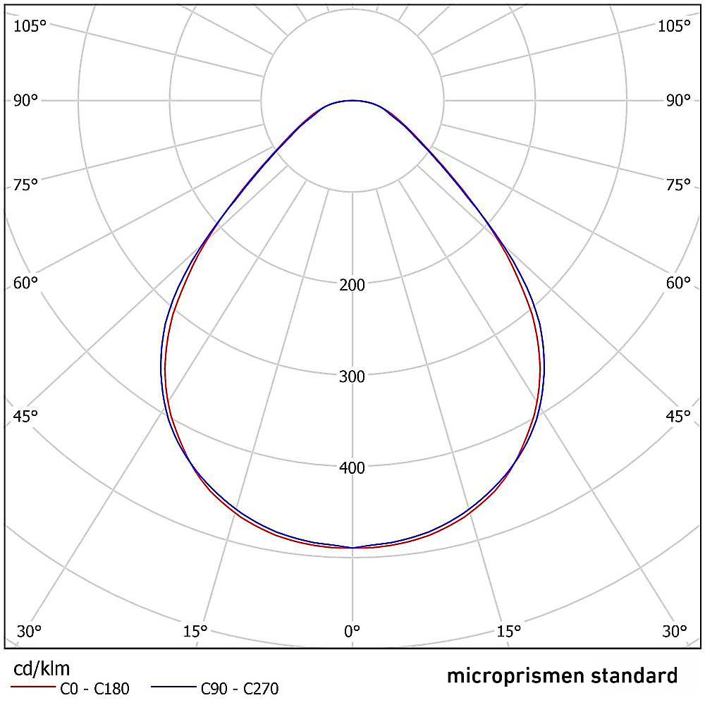 • Microprismen: sehr gut entblendet, gleichmäßiges Licht, brilliant im Raum