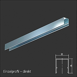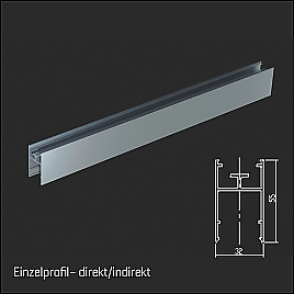 Das Gehäuse der Leuchte besteht aus stranggepresstem Aluminium mit eloxierter Oberfläche (EV1) und überzeugt durch seine extrem schlanke Bauform mit nur 32 mm Breite. Die Leuchte wird grundsätzlich projektbezogen gefertigt – Längen und Lichtleistung werden auftragsbezogen nach Bedarf festgelegt.