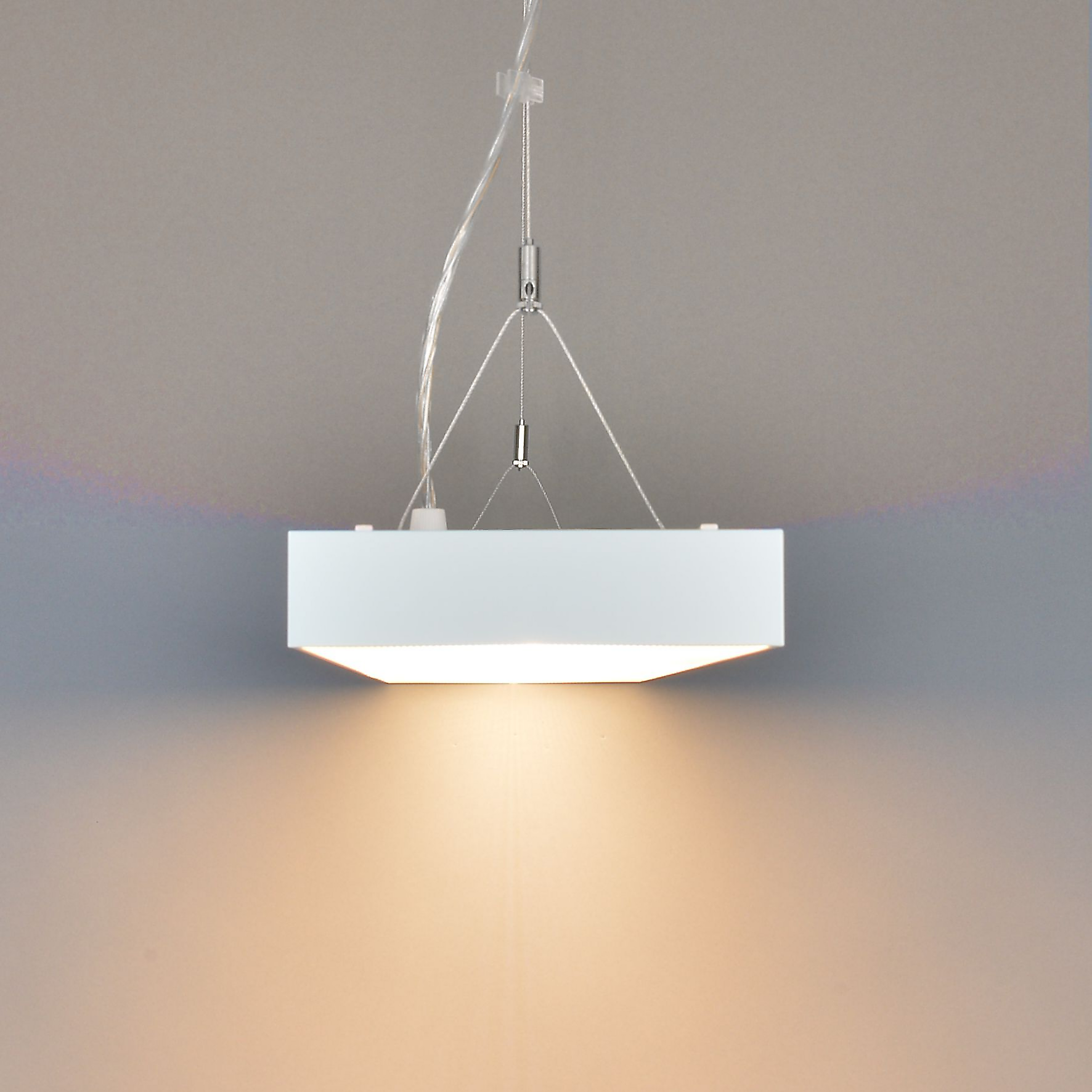 Leuchten von der Decke abgehängt mit optionalem Pendelset.