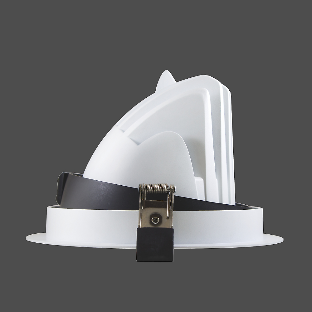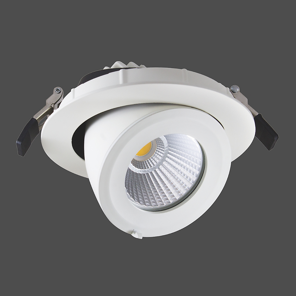 Rundes LED-Einbau-Downlight l.dl Sway mit kardanischer Schwenk- und Drehmechanik zur gezielten Lichtausrichtung in anspruchsvollen Beleuchtungskonzepten. Die Leuchte ist in den Größen S und M erhältlich und für den Deckeneinbau mit werkzeugloser Federtechnik konzipiert. Das Gehäuse besteht aus hochwertigem Aluminiumdruckguss mit glatt matt pulverbeschichteter Oberfläche.